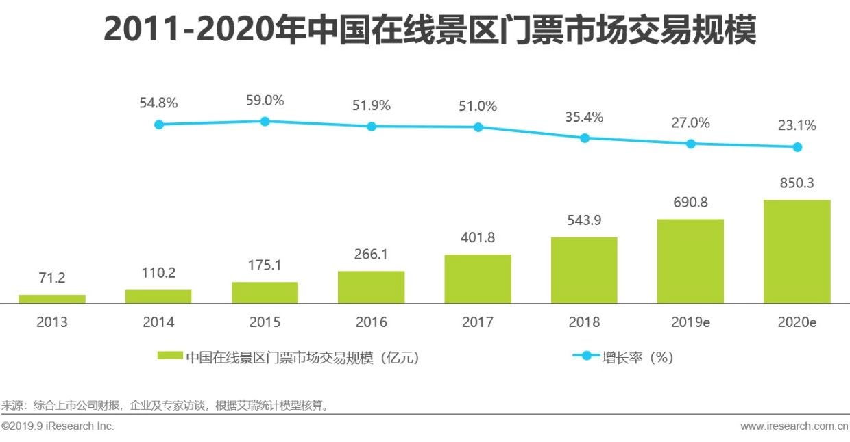 消费习惯日趋线上化,中国在线景区门票规模稳定增长