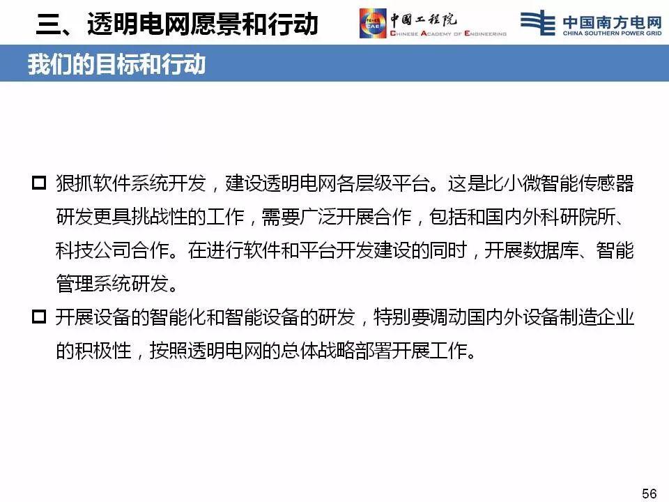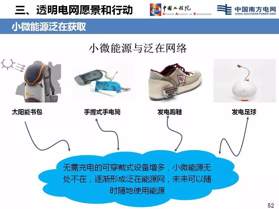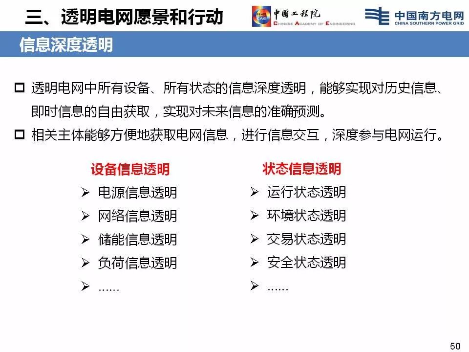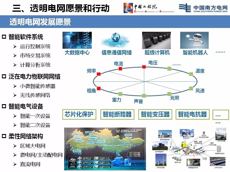 “‘透明电网’首先是现代信息技术,基于‘透明电网’各方的广泛参与,形成小微智能传感器的传感。智能设备和设备的智能化,智能二次系统,强大的软件平台、大数据平台、小微燃料获取的自由化,这些构成了‘透明电网’。”李立浧如此解释。