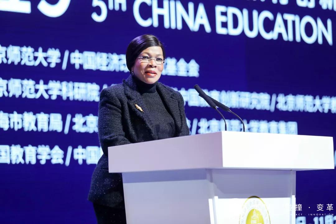 联合国教科文组织国际教育局局长马洛普发表大会讲话。她表示展馆内的内容非常丰富,不仅包含幼儿园、中小学教育,还有大学的教师教育;既有正规教育,也有非正规教育;教博会把文化的传承与教育的创新很好的融合起来。这里汇集了来自日本、芬兰、以色列,也包括中国等很多非常先进国家的最佳教育创新实践,为不同的国家提供了一个非常好的交流平台。她特别指出,创新是整个教育系统的核心,教育创新涉及到方方面面,我们必须要整合各方资源,放到一个生态系统中,让各行各业的人都成为教育创新者。