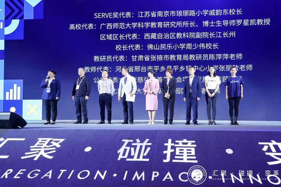 SERVE奖代表江苏省南京市琅琊路小学校长戚韵东,高校代表广西师范大学科学教育研究所所长罗星凯教授,区域代表西藏自治区教科院副院长江长州,校长代表佛山民乐小学校长周少伟,教研员代表甘肃省张掖市教育局教研员陈萍萍,教师代表河北省邢台市平乡县平乡镇中心小学老师张丽敏,企业代表中关村互联网教育创新中心副主任赵鹏伟,公益组织代表北京慈弘慈善基金会项目发展总监顾雅婷,北京师范大学珠海园区志愿者代表先后发表感言。来自台湾的数学教师吴如皓用数学魔术的展示表达转变教学方式、激发学生学习兴趣的重要性。
