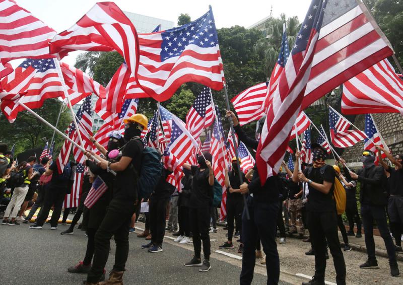举着美国国旗的香港示威者 图片来自大公网