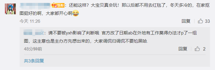 “还能这样?大宝贝真会玩!那以后都不用去红毯了,冬天多冷的,在家抠图挺好的啊,大家都开心啊”