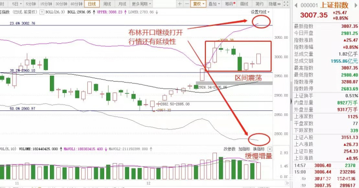 整体来看,由于假期原因,北上资金休息,周四市场平开高走,并相继收复5日均线和3000点整数关口,热点再度启动,形成普涨格局,个股涨多跌少,市场资金有观望情绪,赚钱效应一般,量能上依然不足。