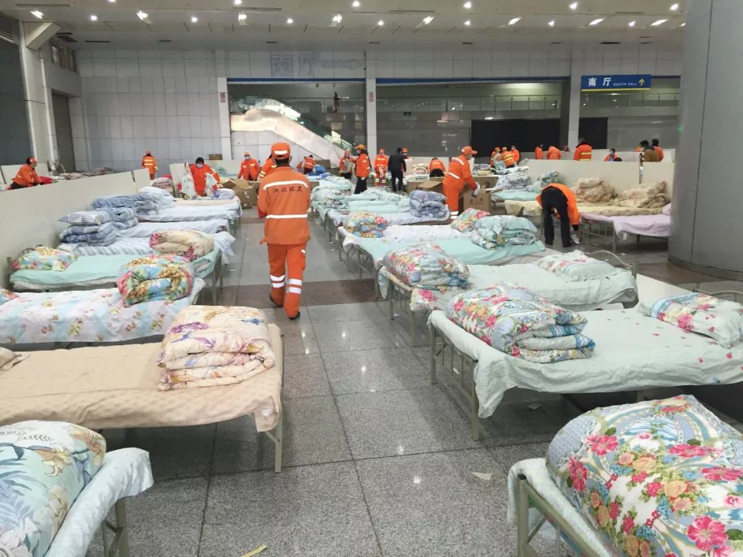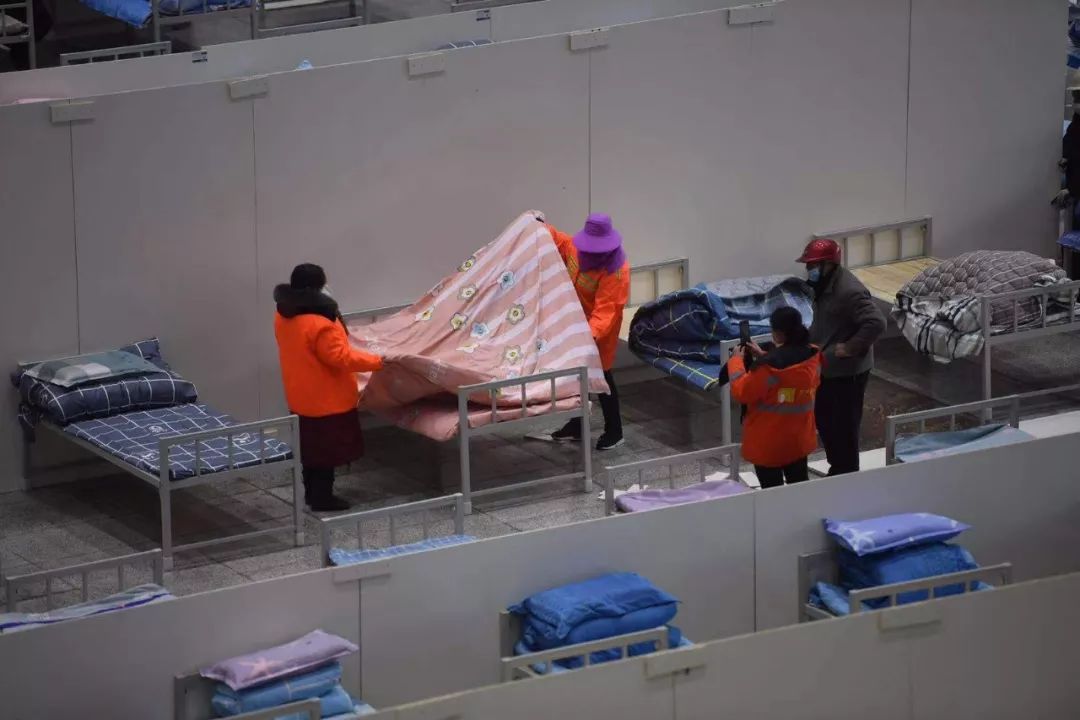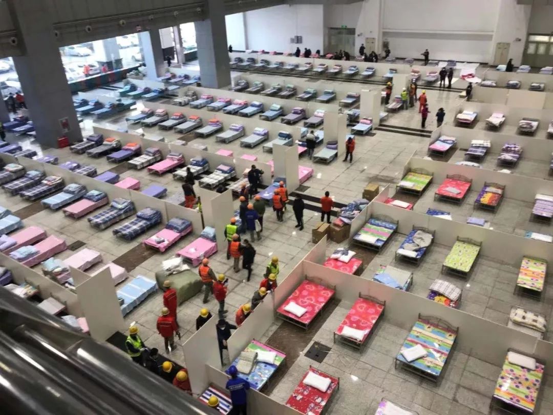2月3日晚,武汉市连夜建了三所“方舱医院”,分别是洪山体育馆(800张床位)、武汉客厅(2000张床位)、武汉国际会展中心(1000张床位),专门收治轻症患者。