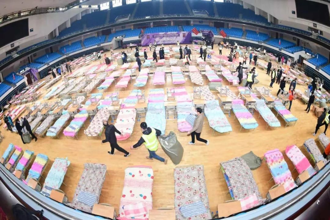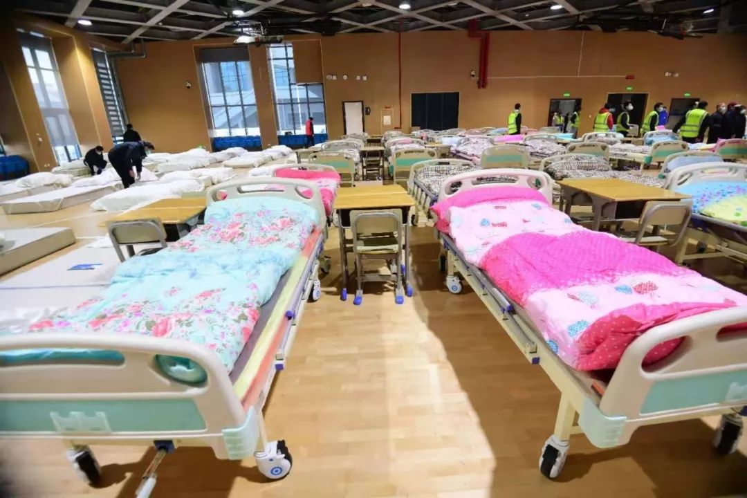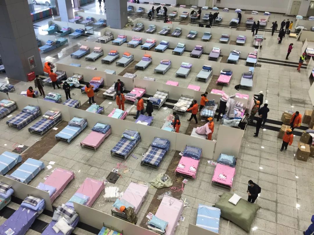 2月3日晚,武汉市连夜建了三所“方舱医院”,分别是洪山体育馆(800张床位)、武汉客厅(2000张床位)、武汉国际会展中心(1000张床位),专门收治轻症患者。
