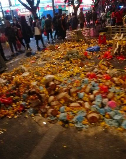 广州花街提早关闭,卖不出去的花,只能全部砸掉。