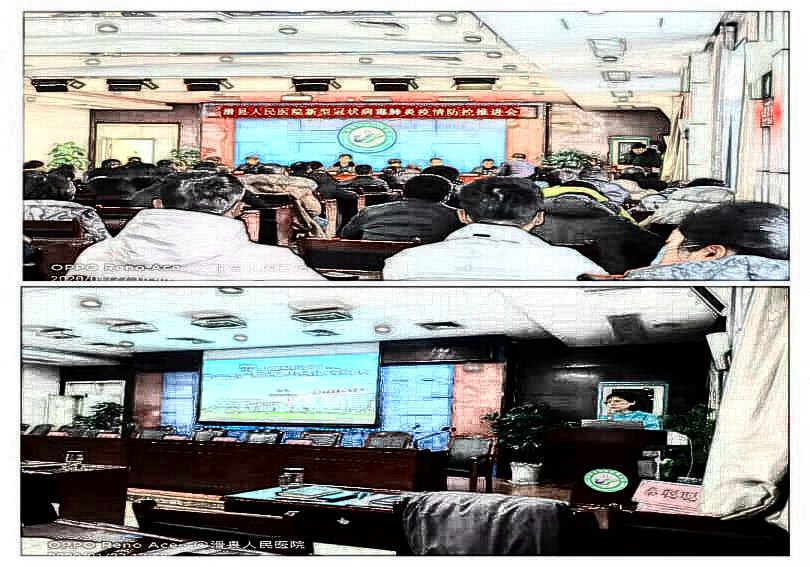 1、1月27日,在门诊5楼会议室针对医院新冠感控应急工作预案及相关工作流程进行了 审议, 李凤垒院长亲自给各科室负责人及行政科室全体授课,薛利红书记主持会议,张敏科长 传达国卫办医函75号文件精神。