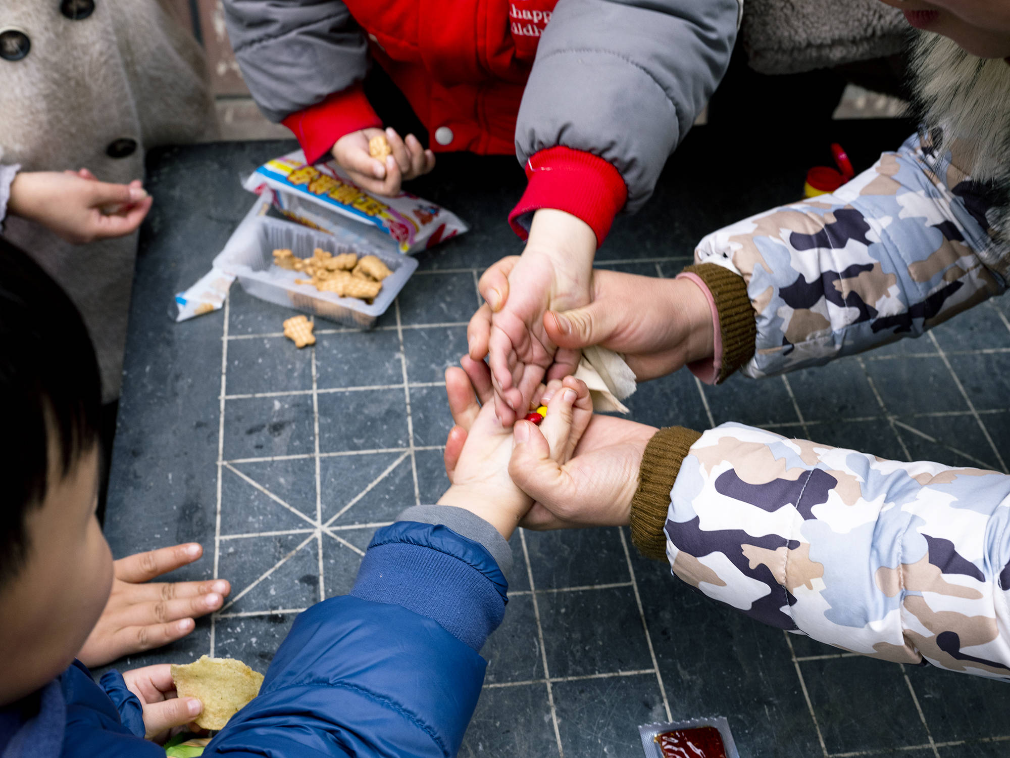 孩子们学习相互分享食物。