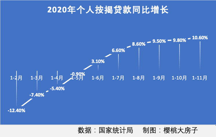 2020年全国房价均价已经进入万年时代,尤其是下半年,疫情对房地产的影响已经过去了,个人按揭贷款同比增长从6月份就开始转正,下半年一路高涨。