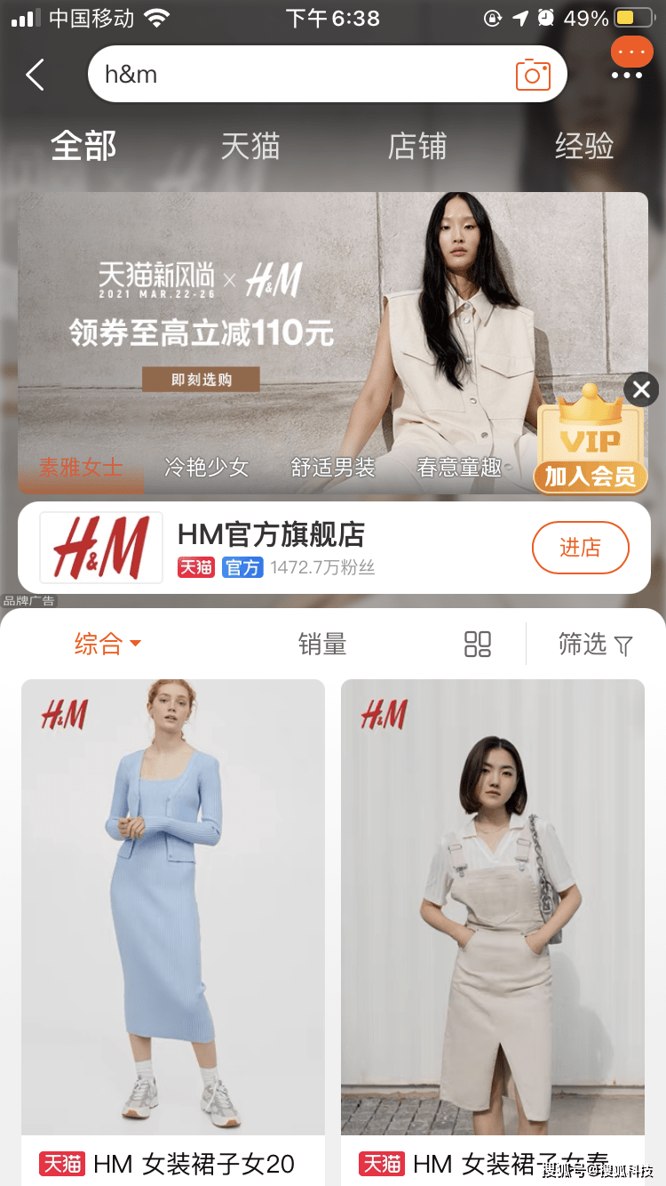 3月24日消息,今日下午18时30分许,天猫、京东等电商平台上已下架H&M的店铺及商品。 搜狐科技在手机淘宝上以“H&M”、“hm”等关键词搜索后发现,相关店铺的页面仍有所显示,但在点击“进店”按钮后后则提示“获取店铺失败”。而在京东上搜索该关键词时,未找到相关结果。 返回搜狐,查看更多 责任编辑: