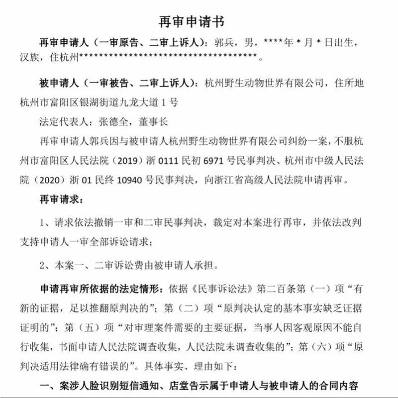 浙江某大学特聘副教授郭兵诉杭州野生动物世界的“国内人脸识别第一案”再有新进展。近日,郭兵向浙江省高级人民法院申请再审,希望认定杭州野生动物世界故意隐瞒其他入园方式诱导年卡用户接受指纹识别、人脸识别入园,收集用户面部特征信息的行为存在欺诈。