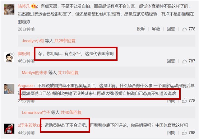 有网友表示,赛后发自拍的行为并没有什么大不了,但王璐瑶更多的是需要总结失败的经验,这才是大家想看到的,什么场合做什么事,而不是要去归因于自己“怂”,因为她代表的并不是自己一个人。