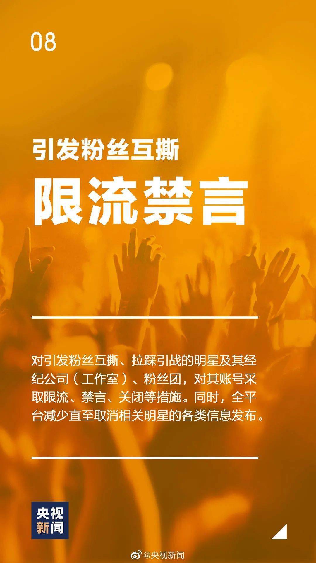 强化网站平台对明星经纪公司(工作室)网上行为的管理责任,制定相关网上运营规范,对账号注册认证、内容发布、商业推广、危机公关、粉丝管理等网上行为作出明确规定。强化明星经纪公司(工作室)对粉丝群体的引导责任,对引发粉丝互撕、拉踩引战的明星及其经纪公司(工作室)、粉丝团,对其账号采取限流、禁言、关闭等措施,同时,全平台减少直至取消相关明星的各类信息发布。