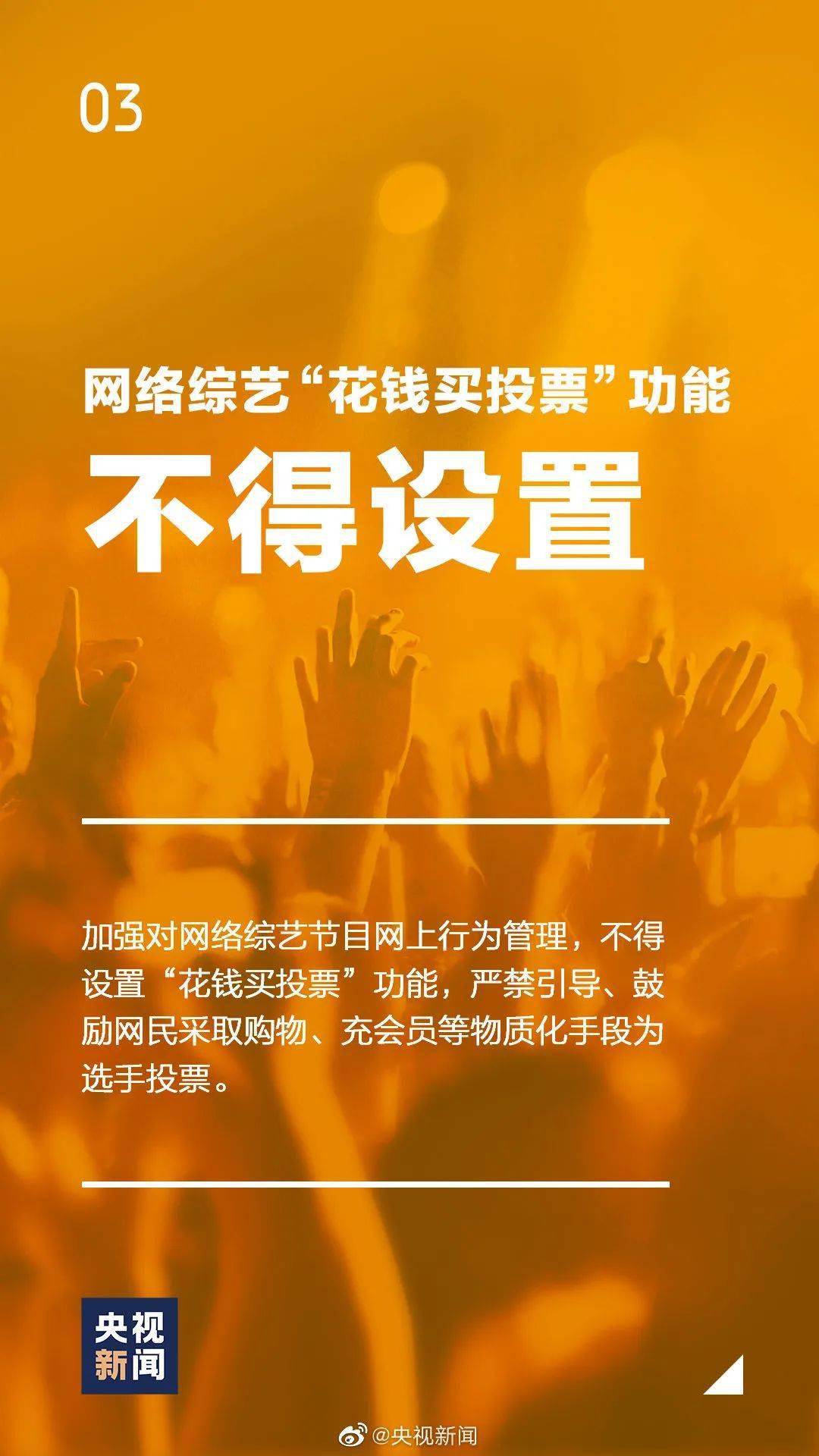 加强对网络综艺节目网上行为管理,不得设置“花钱买投票”功能,严禁引导、鼓励网民采取购物、充会员等物质化手段为选手投票。