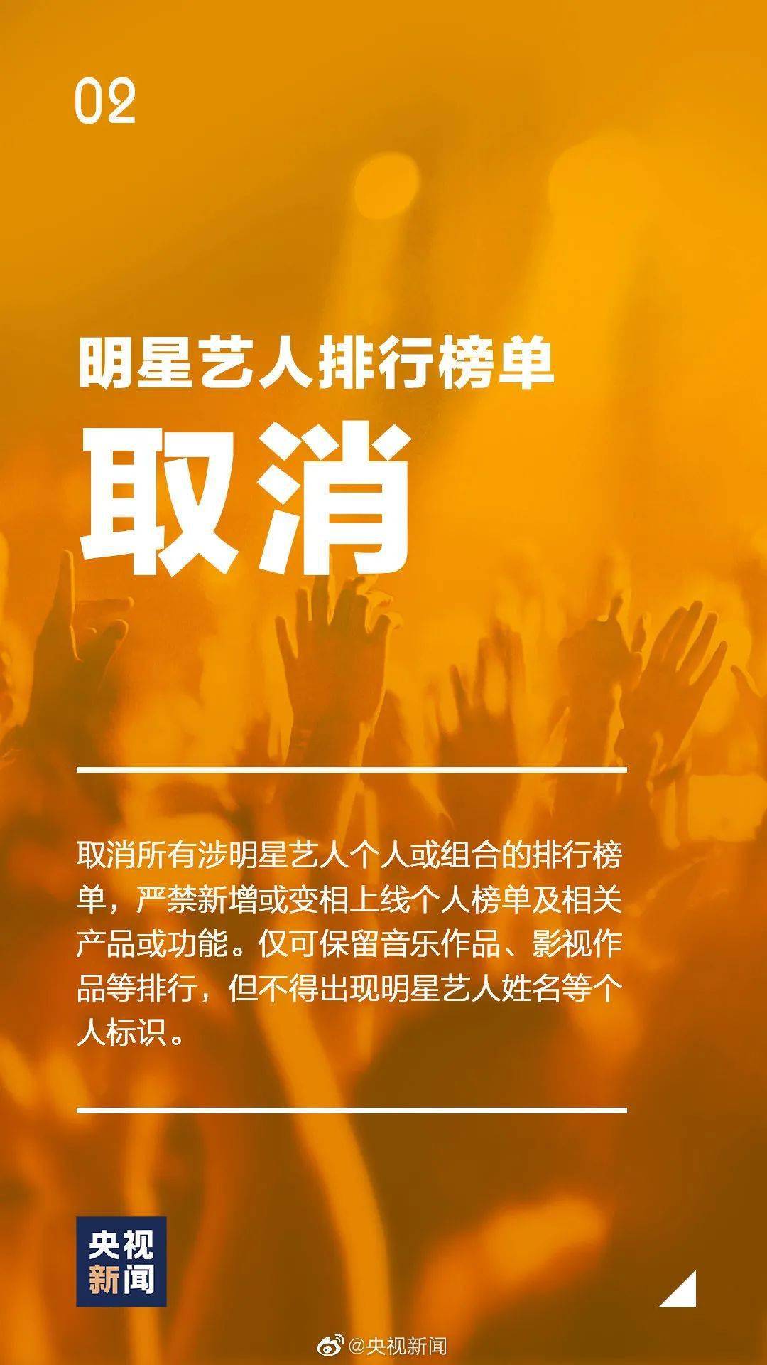 取消所有涉明星艺人个人或组合的排行榜单,严禁新增或变相上线个人榜单及相关产品或功能。仅可保留音乐作品、影视作品等排行,但不得出现明星艺人姓名等个人标识。
