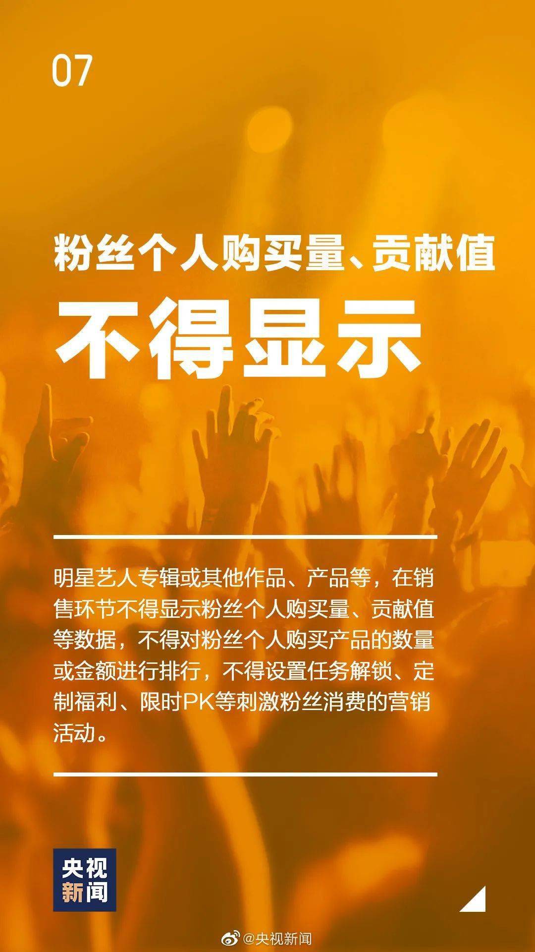 制定细化规则,对明星艺人专辑或其他作品、产品等,在销售环节不得显示粉丝个人购买量、贡献值等数据,不得对粉丝个人购买产品的数量或金额进行排行,不得设置任务解锁、定制福利、限时PK等刺激粉丝消费的营销活动。