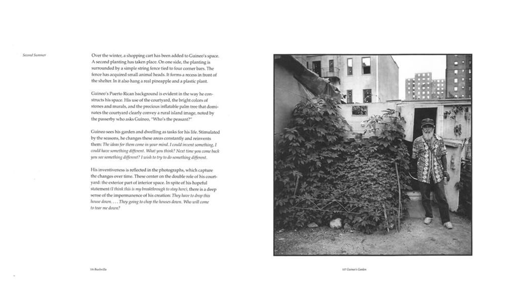 相比精致雕琢的园林,abC营造的现场花园更像是另一种:1993年,一本名为《临时的花园,无根的生活》( Transitory Gardens,Uprooted Lives )的摄影集向我们图文并茂地展现了无家可归的人们在纽约贫民区为自己精心装扮的临时花园, 一种“无家而园”的渴望与积极实践。