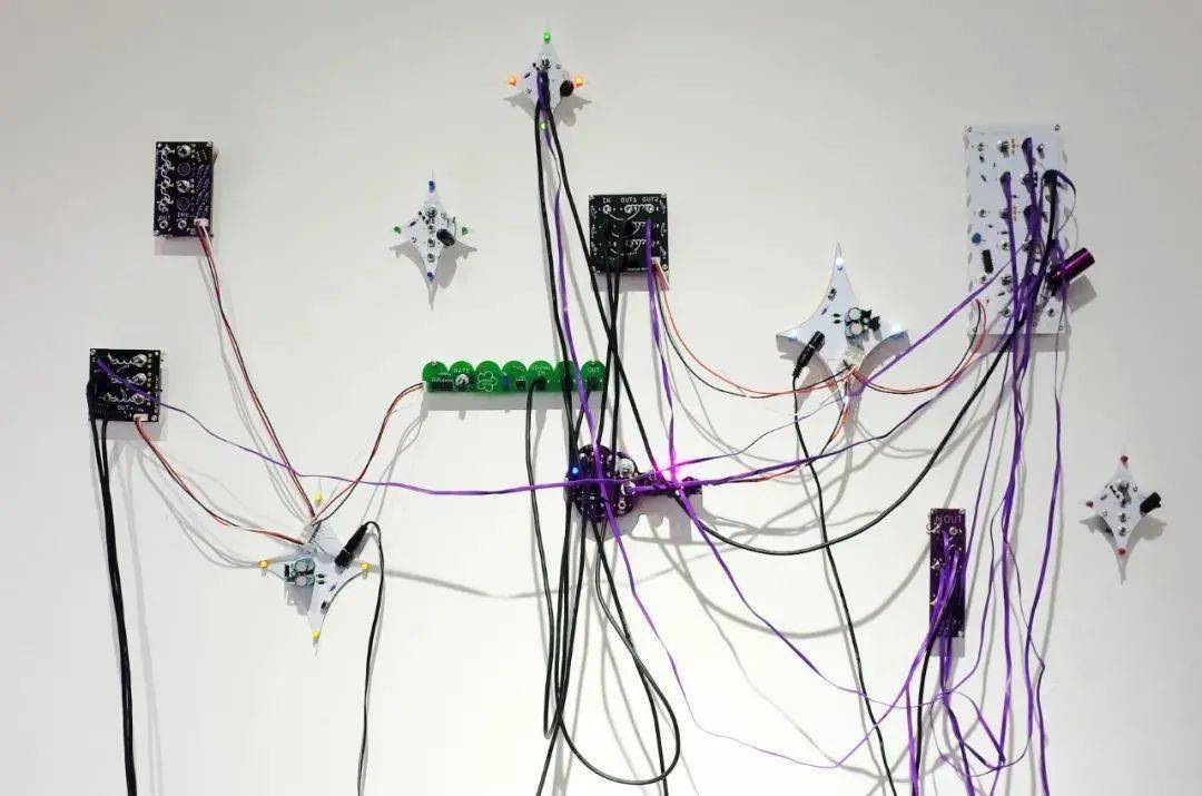 “声音游牧者”上海站邀请到艺术小组 弱电子制造厂呈现全新内容,以印刷电路板为媒介,进行声音,绘画,动力等方向的探索。其中 宋淳song作品《 PCB synth》中 电路板本身成为合成器,电子元件暴露其外,所有声音震荡即发生于这些裸露的电子器件中。放大器和它流出的声音是让人类和电流产生感情非常合适的媒介。