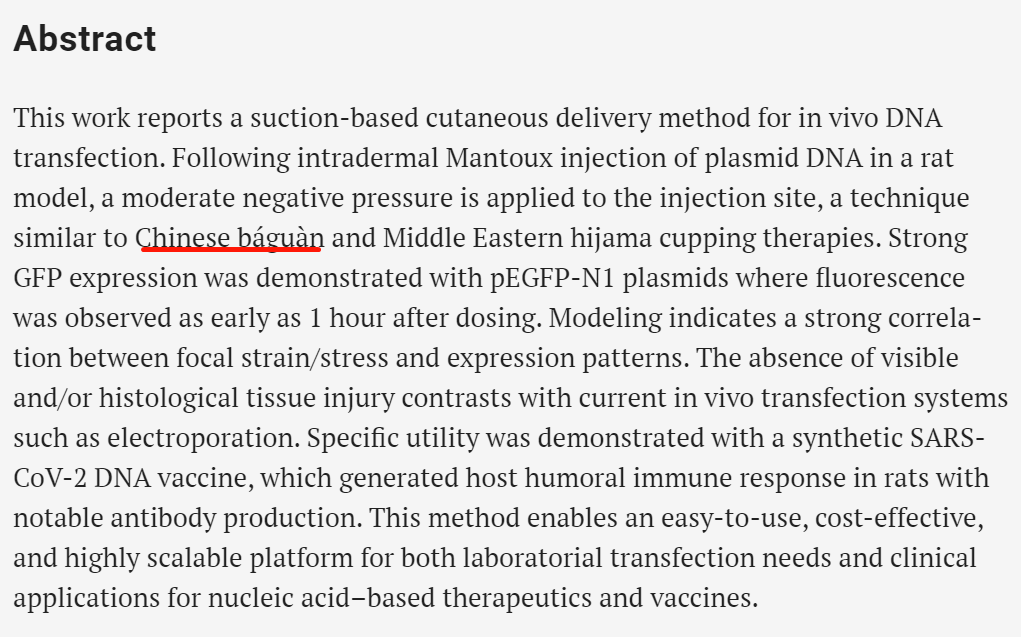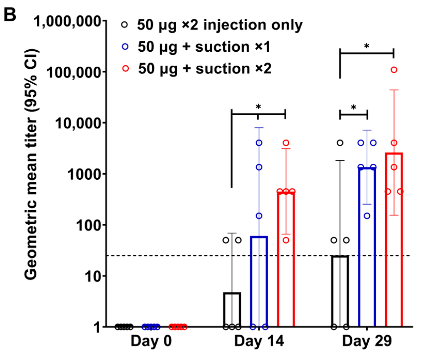 近期,《科学进展》杂志发表了一项来自罗格斯大学科研团队的新成果, 科学家们从“拔罐”中获得灵感,在注射DNA后施加负压,竟然能够大幅度提升免疫效果,可达单纯注射的百倍以上[1]。