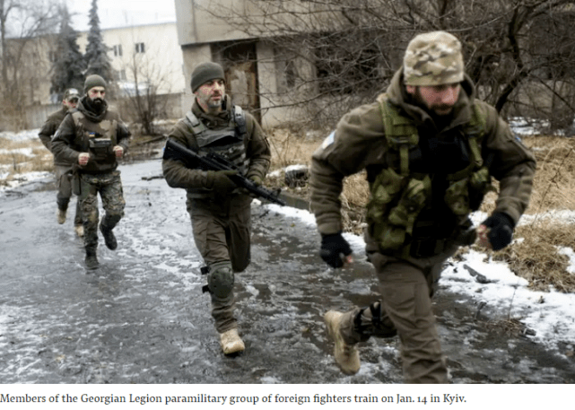 美媒称,对泽连斯基宣布组建“乌克兰领土防卫国际战队”的消息感到蠢蠢欲动的,还有位于乌克兰境内的一支名为“格鲁吉亚国家军团”的队伍。这是一支由具有西方国家军队服役经验的讲英语的志愿者所组成的准军事部队,此前负责训练乌克兰军队,有时还与乌克兰海军陆战队一起部署到前线作战。这支部队当中一名曾参加过2008年俄格战争的格鲁吉亚退伍军人称:“这是我们一直在等待的,这非常棒。”