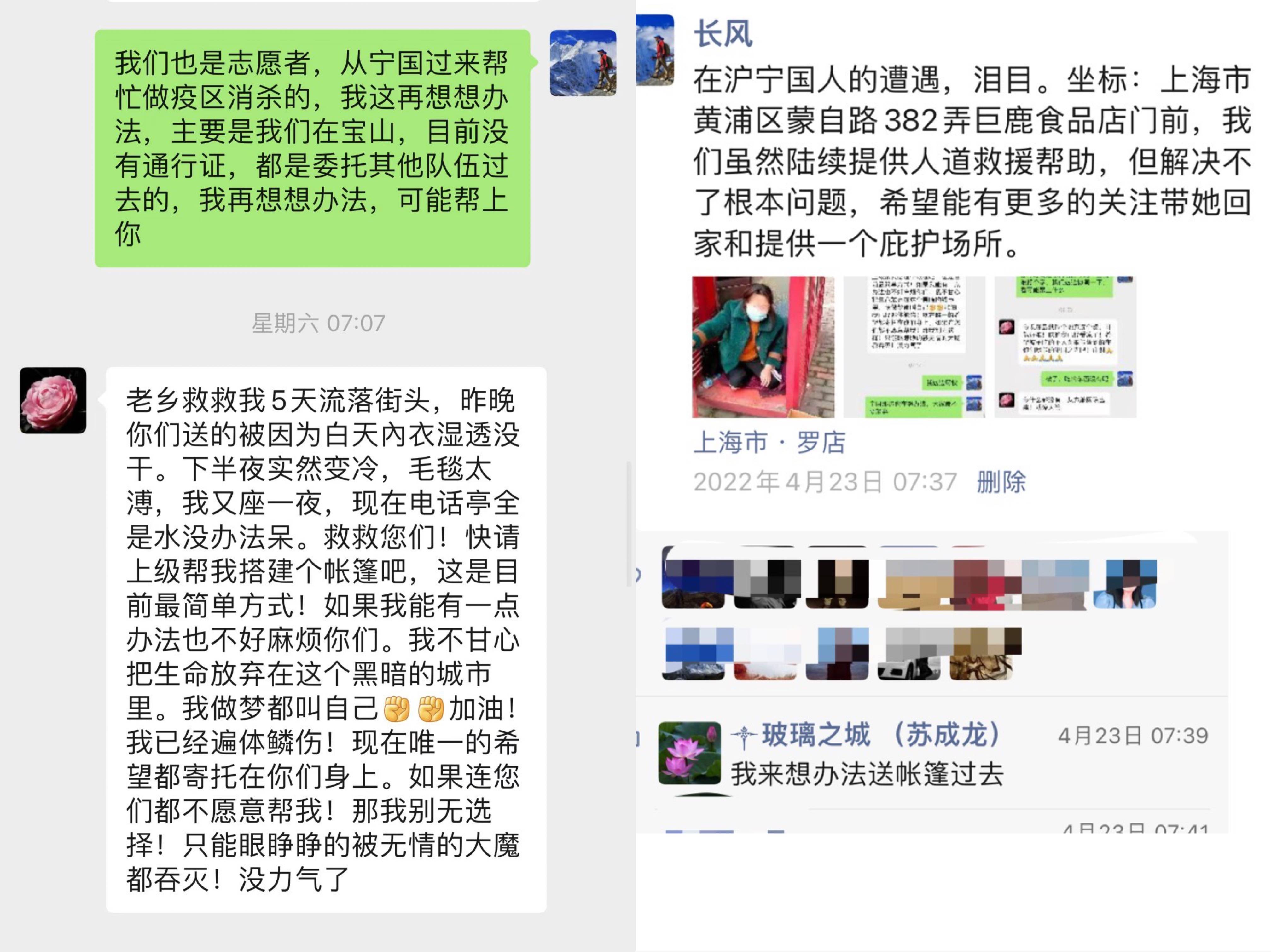 老头告诉袁玉萍,自己早些日子从山东来上海找工作,第三天就碰上疫情封控,不仅工作没着落也没地方住,已经在银行里凑合了十几天。他对这附近熟得很,领着袁玉萍去找救助站。