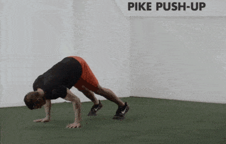 高位俯卧撑:身体折成“V”字型,用肩膀力量推起身体。