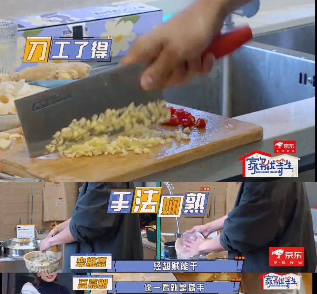 案板上躺着小李琳没切完的蒜丁,块头之大,被嘉宾误认成土豆⬇️