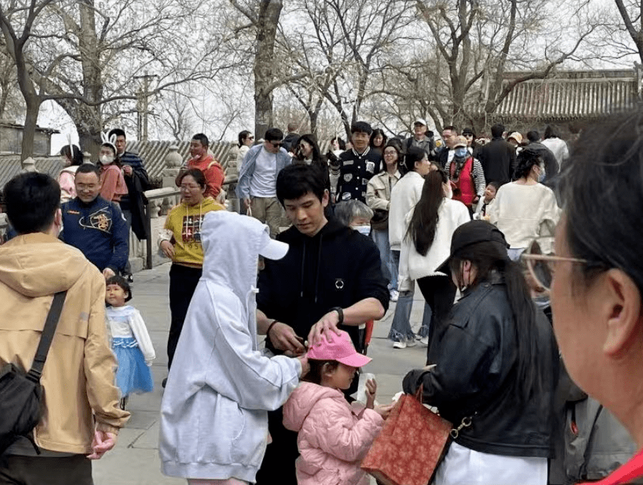 今年4月份被拍到带着两个女儿去北海公园,没戴墨镜和口罩,全然一副素人奶爸的模样⬇️