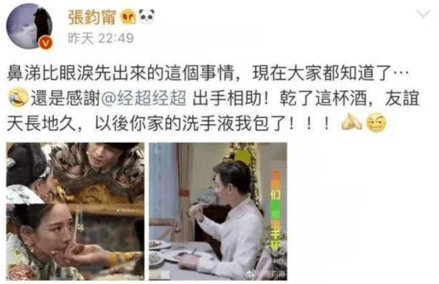 后来,张钧甯还专门发文感谢他,开玩笑称:“以后你家的洗手液我包了。”