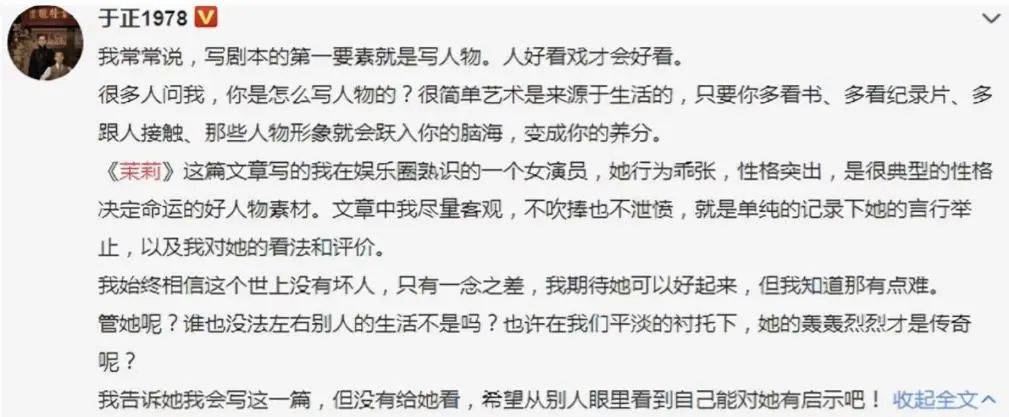 如果真如于正说的那样,作为知遇之恩而不报,这操作也是没谁了!