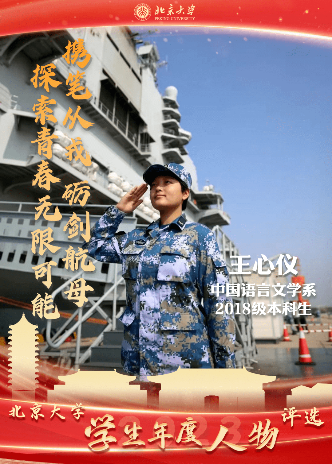 从静谧的燕园到澎湃的海洋,从“北大红”到“海军蓝”,携笔从戎的王心仪向当代年轻人展示了青春的无限可能。2020年入伍后,她以总评第一的成绩被分配到辽宁舰,成为一名航母操舵兵。2021至2022年间,王心仪随辽宁舰完成十余次演训任务。王心仪在祖国的东海岸,看着近在眼前的外国军舰,置身波涛起伏的西太平洋,每一次执行任务都让她更加感受到作为一名中华儿女与祖国的血脉相连。