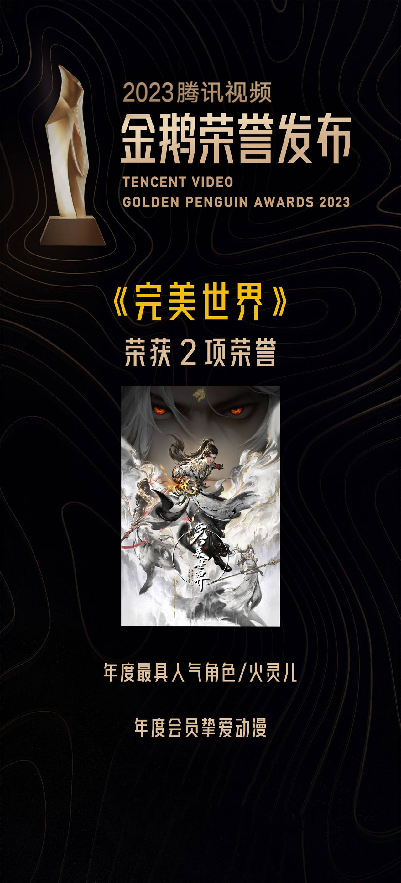 最后再来说说《完美世界》这部动漫作品,这部动漫作品可以说是现在最火的几部动漫作品之一,而在这次2023年度国漫荣誉里面也是获得了两大奖项。首先《完美世界》获得了年度会员挚爱动漫这个奖项,在这个奖项里面一共有三部动漫入选,其他两部动漫作品分别是《斗罗大陆》第一部和《斗破苍穹年番》。